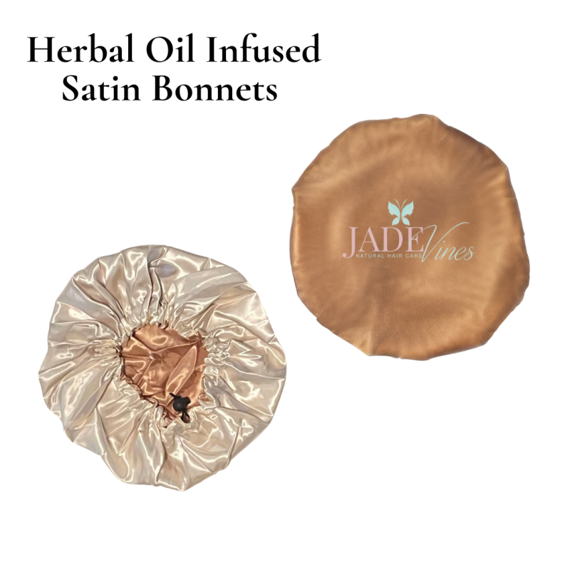 The Jade Vines Herbal Satin Bonnet is infused with a calming blend of botanical ingredients that promote scalp wellness, hair retention, and a sense of peace of mind.